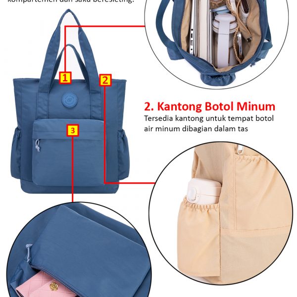 • Tas bisa digunakan sebagai ransel, tote bag ataupun tas jinjing