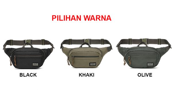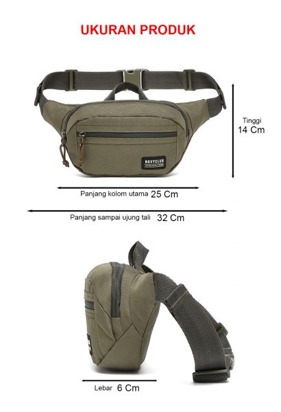 Navy Club tas pinggang dengan bahan polyester water repellent (memberi perlindungan sementara dari cipratan air dan hujan dengan intensitas ringan). Kolom utama yang cukup luas bisa untuk membawa gadget 6.5 inch dan barang lainnya. Tersedia satu kolom tambahan dibagian depan tas untuk menyimpan barang yang sering diakses.