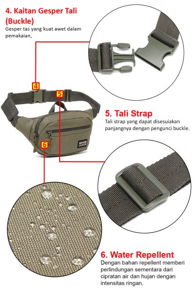 ● Lebar tali tas pinggang dan buckle 1.5 inch
