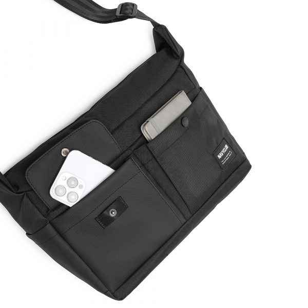 Dua saku samping disisi kanan kiri bisa untuk membawa paung lipat atau barang kecil lainnya. Tersedia dua kolom tambahan dibagian depan tas untuk menyimpan barang yang sering diakses. Tali selempang yang dapat disesuaikan panjangnya (adjustable) sampai 100cm sesuai dengan kenyamanan Anda. Terdapat juga saku dengan resleting dibagian belakang tas aman untuk menyimpan barang berharga lainnya (safety pocket).