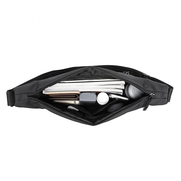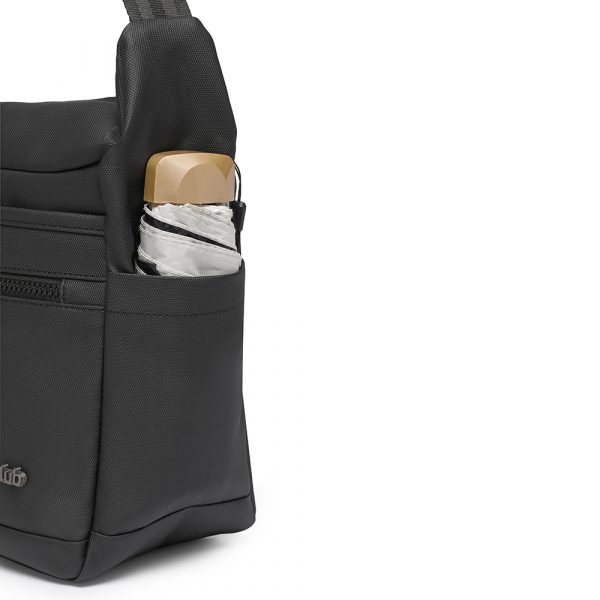 Dua saku samping disisi kanan kiri bisa untuk membawa paung lipat atau barang kecil lainnya. Tersedia dua kolom tambahan dibagian depan tas untuk menyimpan barang yang sering diakses. Tali selempang yang dapat disesuaikan panjangnya (adjustable) sampai 100cm sesuai dengan kenyamanan Anda. Terdapat juga saku dengan resleting dibagian belakang tas aman untuk menyimpan barang berharga lainnya (safety pocket).